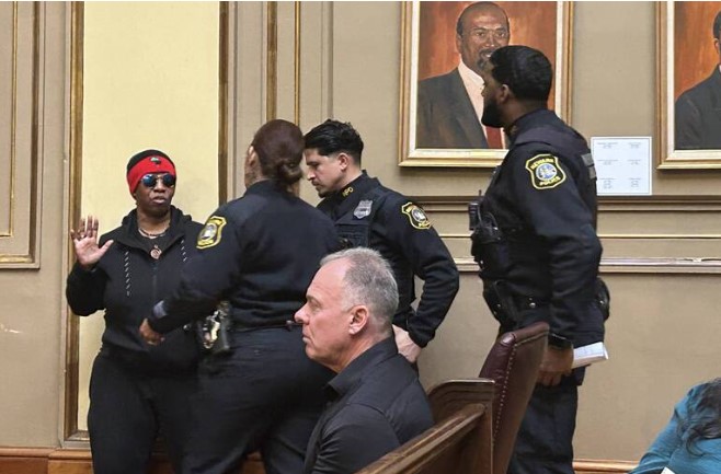 El Bomani, de 60 años, es una oradora frecuente durante la parte pública de las reuniones del Concejo Municipal. El 7 de febrero, por orden de la presidenta del Concejo LaMonica McIver, los agentes de policía la expulsaron de la sala después de que El Bomani interrumpiera al administrador comercial Eric Pennington, quien estaba refutando las acusaciones de corrupción de El Bomani.